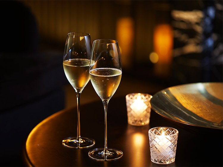 - Ruinart Blanc de Blancs free-flow with six canapés at table seat